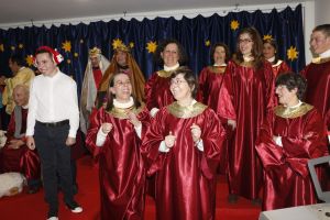 Tudo começou com a atuação dos nossos utentes. Enquanto um grupo de jovens ia cantando músicas de Natal, um outro grupo ia entrando em palco contando a história de José e Maria. Foi emocionante ver a alegria e a compenetração com que os nossos jovens atuaram.
