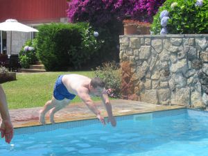 Quando chegamos, o sol já estava bem quente, e tomamos um belo banho de piscina, com muitos mergulhos à mistura.