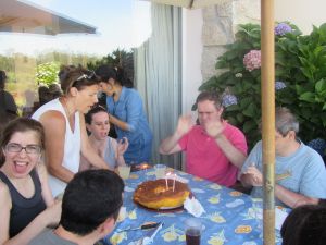 À hora do lanche, havia ainda mais motivos para festejar, já que o Márcio fazia anos. Assim, cantamos os parabéns e fizemos uma bonita festa.