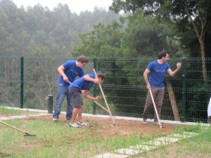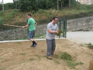 - Logo perto das 9:00 da manhã, de forma a fugir ao calor que se esperava para aquele dia, os nossos jovens começaram a trabalhar arduamente na horta, com a ajuda preciosa do Sr. José Devesas, retirando as ervas daninhas, as pedras, limpando o terreno;