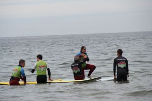 Divididos em grupos, avançado ou em iniciação, os utentes puderam divertir-se a aprender algumas das técnicas do Surf e usufruir dos seus benefícios.