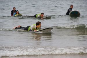 Alguns começam agora a colocar-se em pé na prancha o que demonstra avanços significativos.