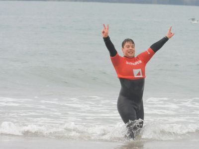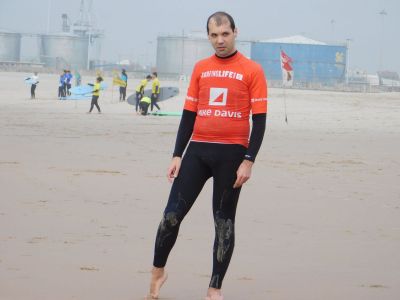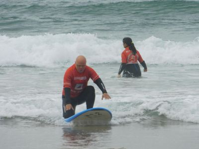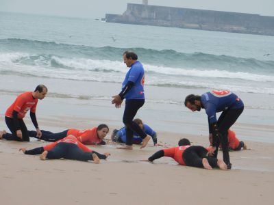 Os participantes esperam ansiosamente pelo dia em que vestem o fato de "surfista", fazem exercíciosn na areia e rumam ao mar.