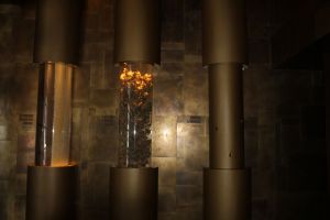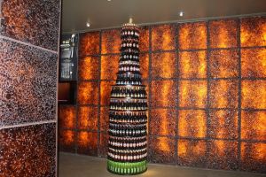 Adoramos a parede feita de garrafas de cerveja. Que bonita era! Parecia um vitral.